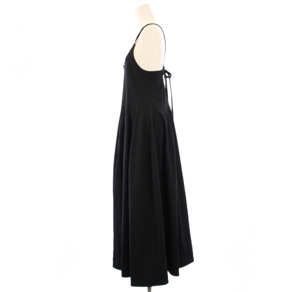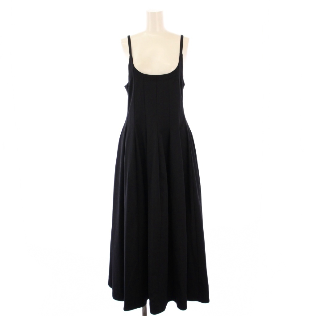ジルサンダー JIL SANDER フレアワンピース マキシ ロング キャミソール Uネック ワンカラー 麻 リネン混 34 黒 ブラック
