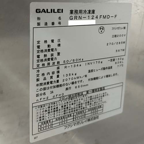 【業界最長1年保証】縦型冷凍庫 フクシマガリレイ(福島工業) GRN-124FMD-F 業務用 中古/送料別途見積