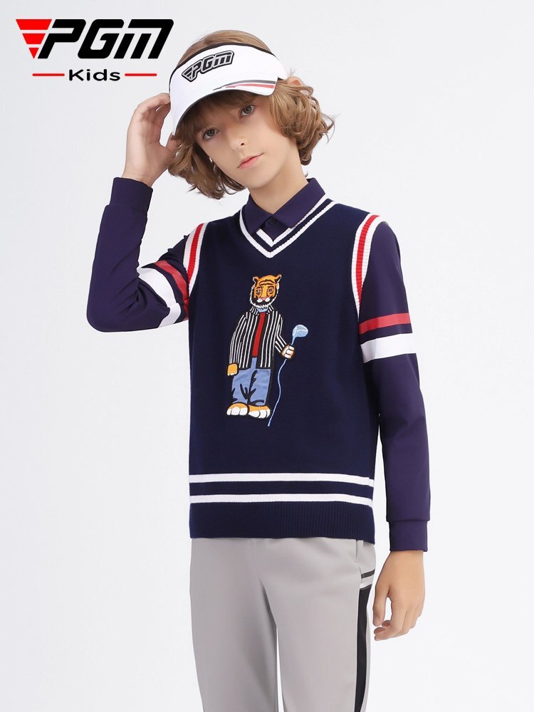 ゴルフベスト KIDS キッズ GOLF ウールセーター ゴルフウェア 防寒 保温 秋冬 ニットセーター スポーツウェア カジュ