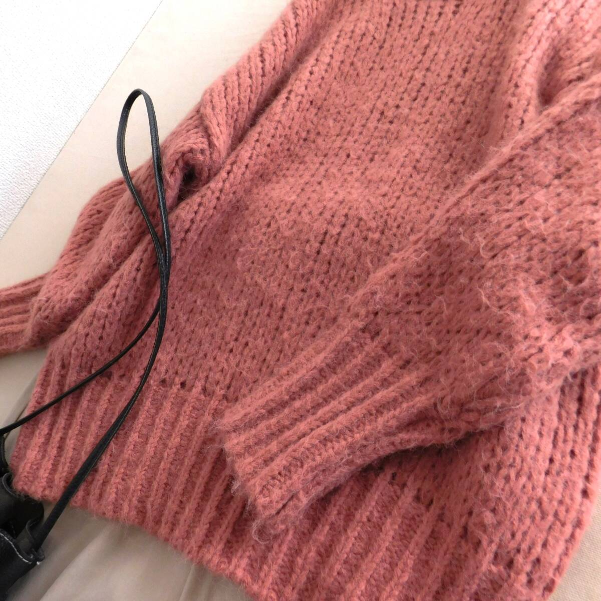 ピンク系のふわふわに起毛したニットがかわいいです。