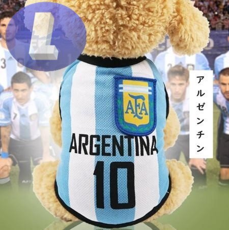 ドッグウェア 春夏 アルゼンチン Lサイズ サッカー 代表 ユニフォーム 犬服 中型犬 袖なし 通気性 柔らか 洋服 可愛い
