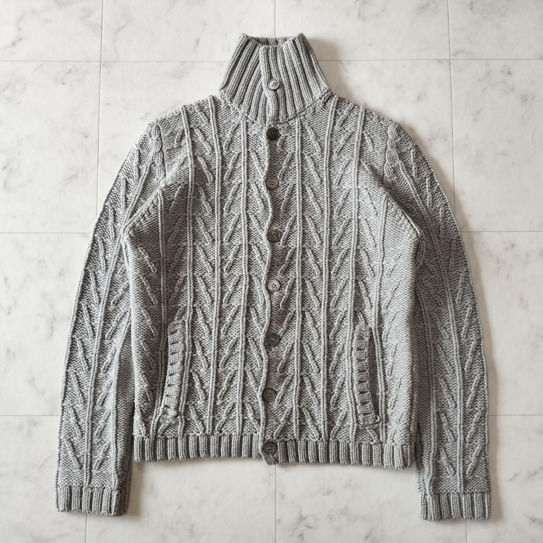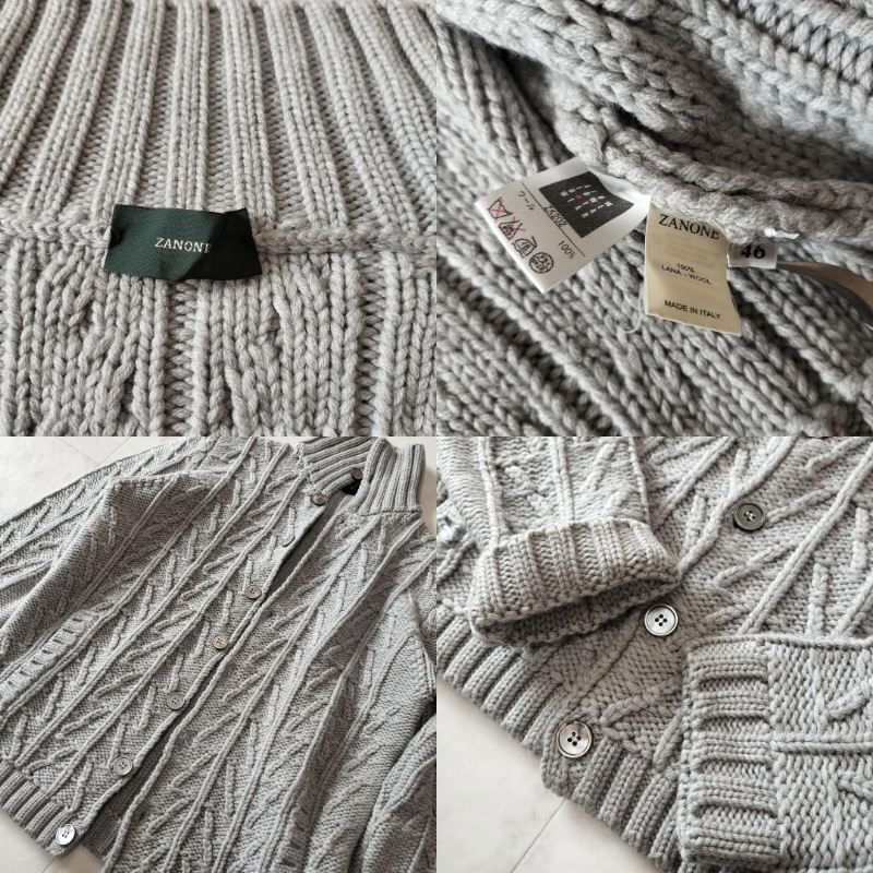 ZANONE ザノーネ ウール100% スタンドカラー ケーブルニット カーディガン ライトグレー グレー イタリア製 made in ITALY lana wool100%