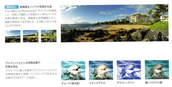 本家のPhotoshopにはない、Photoshop Elementsオリジナルの機能や効果も搭載されています。