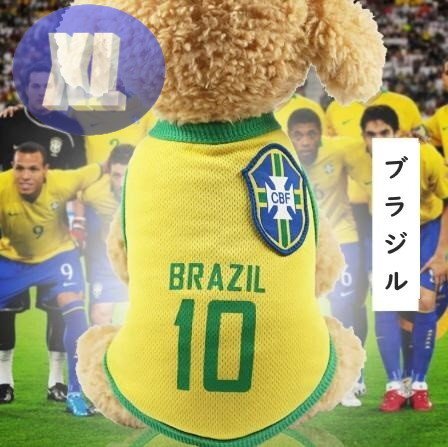 ドッグウェア 春夏 ブラジル XLサイズ サッカー 代表 ユニフォーム 犬服 中型犬 袖なし 通気性 柔らか 洋服 可愛い