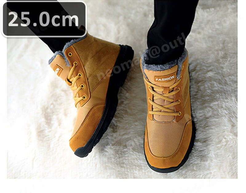 メンズ ブーツ 【962】 25.0cm ライトブラウン ムートンブーツ スニーカー ウィンターブーツ 裏起毛 防水 防寒 防滑 冬用靴 綿靴