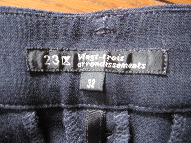 23区のストレッチが効いたテーパードパンツ、ネイビー、サイズ32です。ウエストのホックをずらしてあります。ご自身のサイズにお直しして下さい。