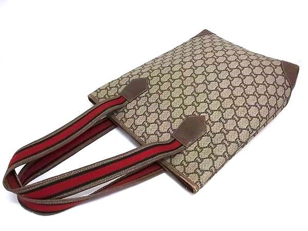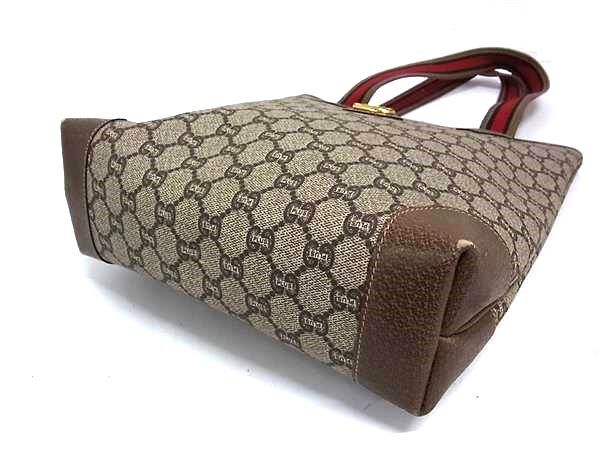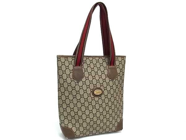1円 GUCCI オールドグッチ ヴィンテージ グッチプラス シェリーライン GG柄 PVC×レザー トート ショルダーバッグ ブラウン系 FR7043