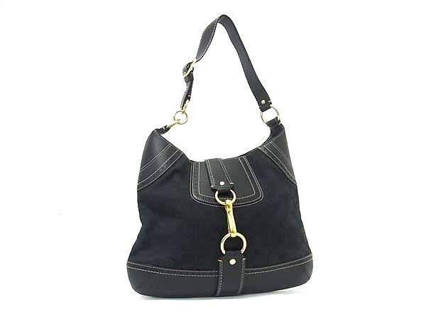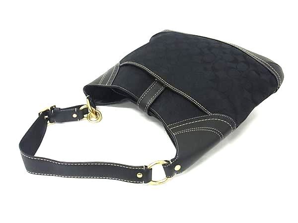 1円 ■美品■ COACH コーチ 10535 シグネチャー キャンバス×レザー ワンショルダーバッグ 肩掛け レディース ブラック系 FP8592