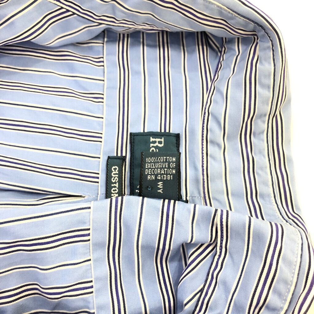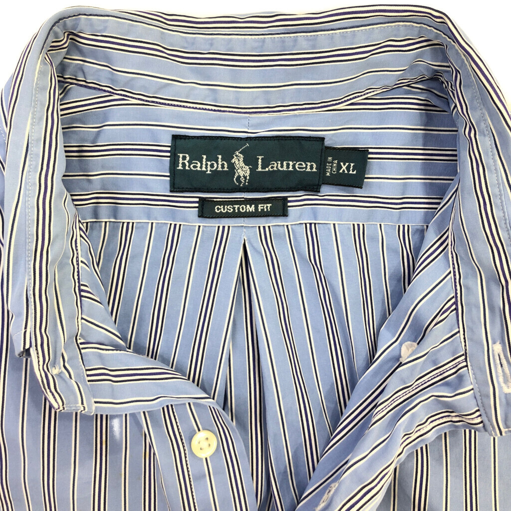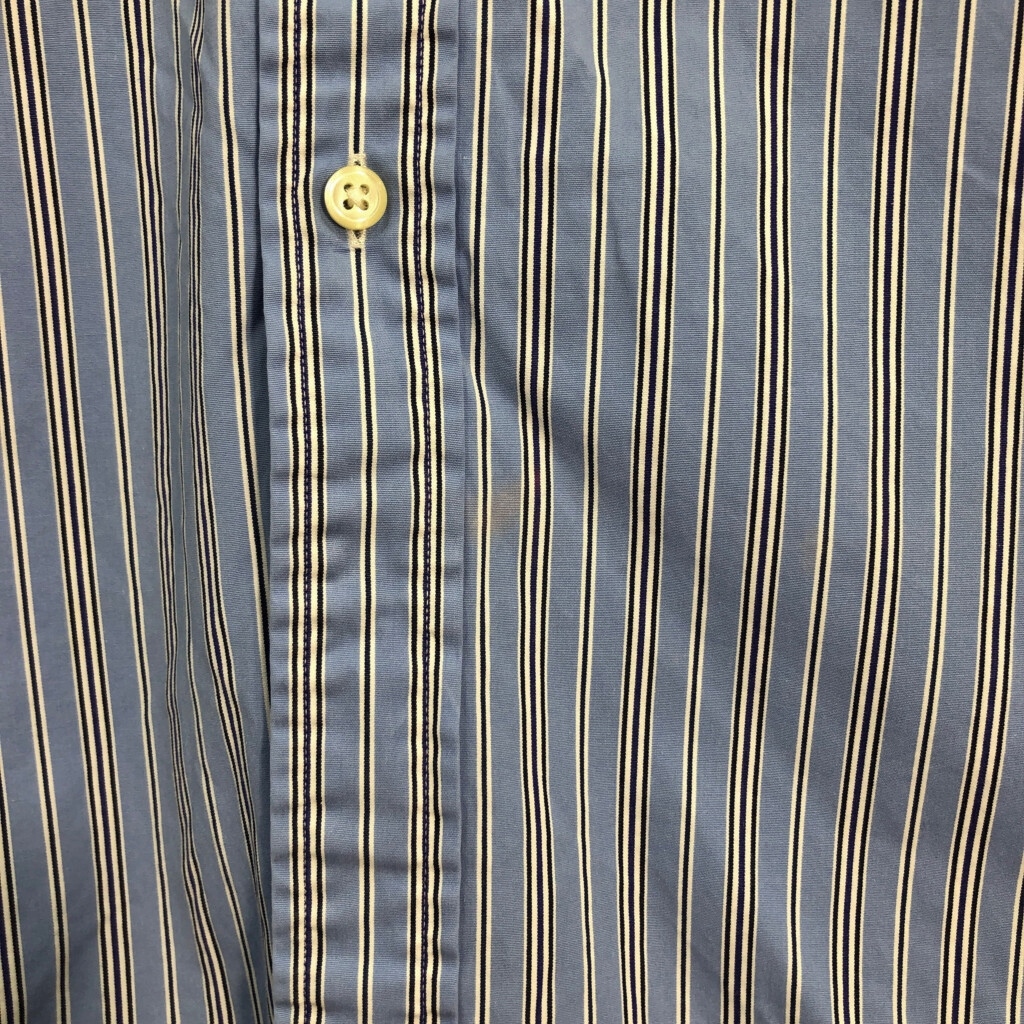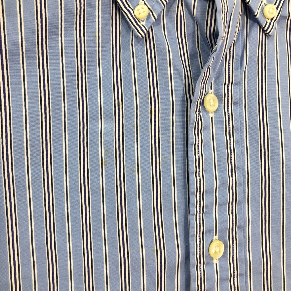 | 【商品管理番号】 R8969 【ブランド】 RALPH LAUREN/ラルフローレン 【サイズ】 XL 【実寸サイズ】 肩幅:約50cm 着丈:約81cm 身幅:約66cm 袖丈:約67cm 【主な素材】 表地 : コットン 【色】 ライトブルー 【仕様】 ボタンダウン ストライプ 【状態】 汚れ:胸、腹部 | |||
