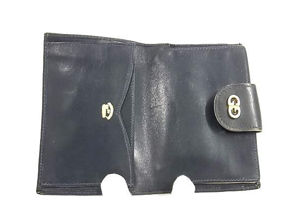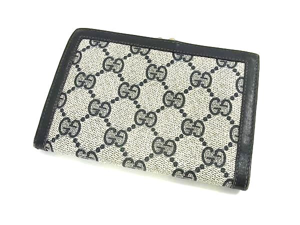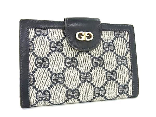 1円 GUCCI オールドグッチ ヴィンテージ GG柄 PVC×レザー がま口 二つ折り 財布 ウォレット 小銭入れ ベージュ系×ネイビー系 FR6859