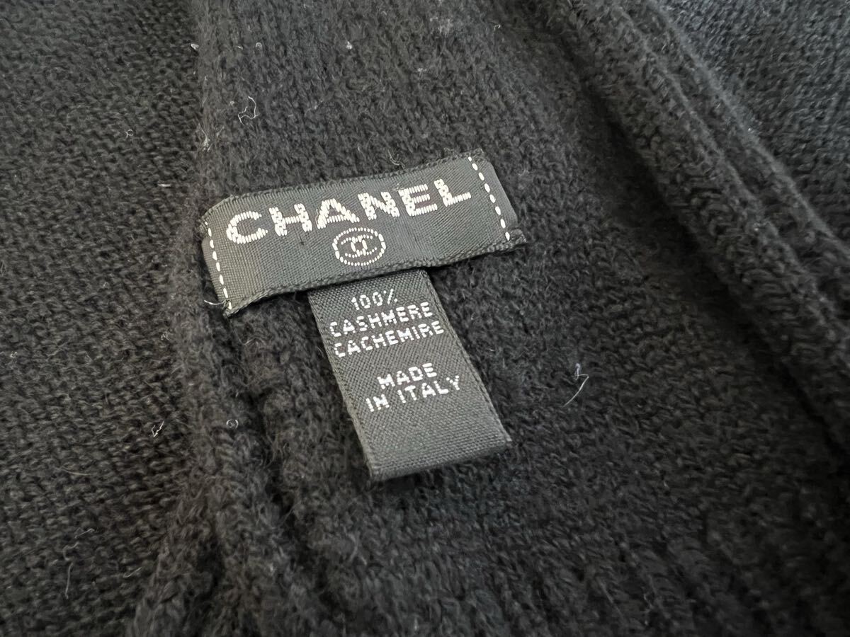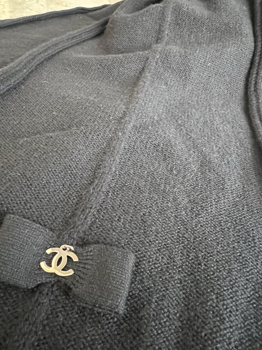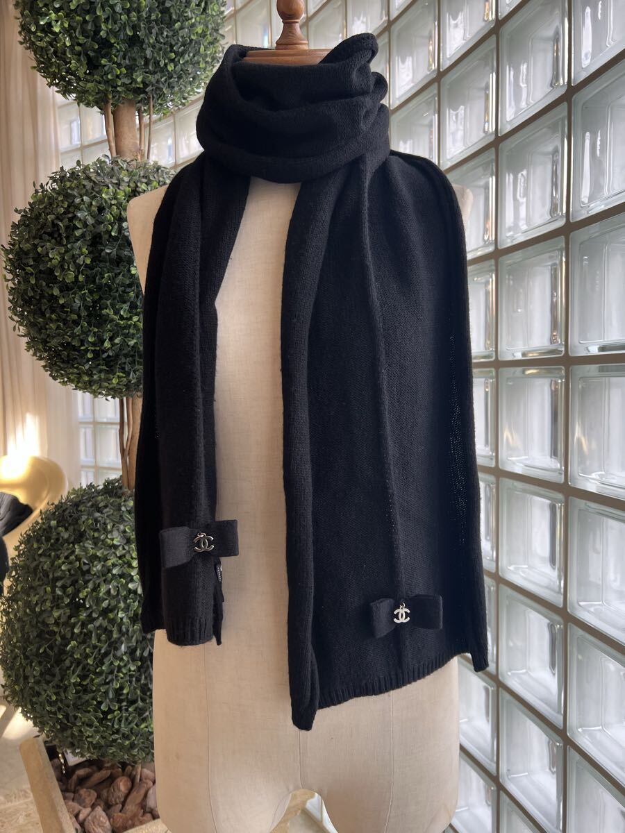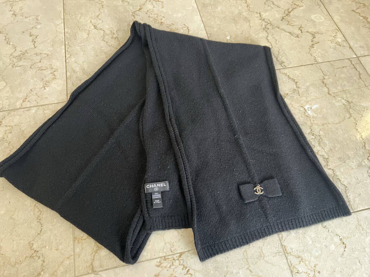 シャネル CHANEL★ カシミヤ100% ブラック リボン マフラー USED♪です。