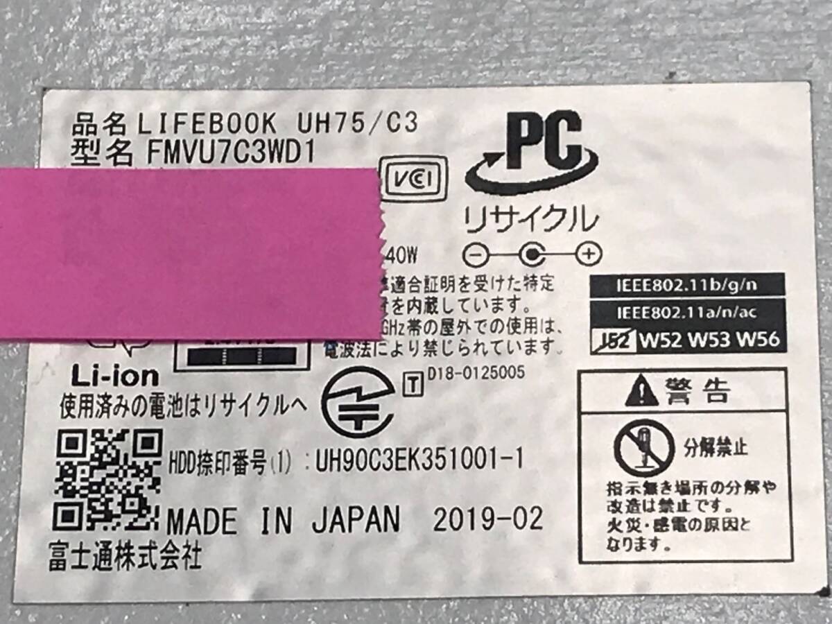 FUJITSU/ノート/SSD 256GB/第8世代Core i7/メモリ4GB/4GB/WEBカメラ有/OS無