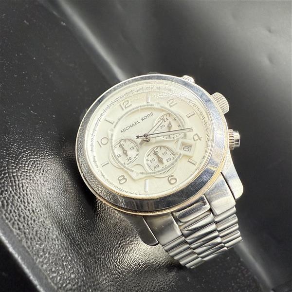 | 1 円 稼働品 MICHAEL KORS マイケルコース MK-8086 メンズ 腕時計 現状品 個人保管品 クオーツ 時計 白文字盤 ブランド クロノグラフ 10703 | ||