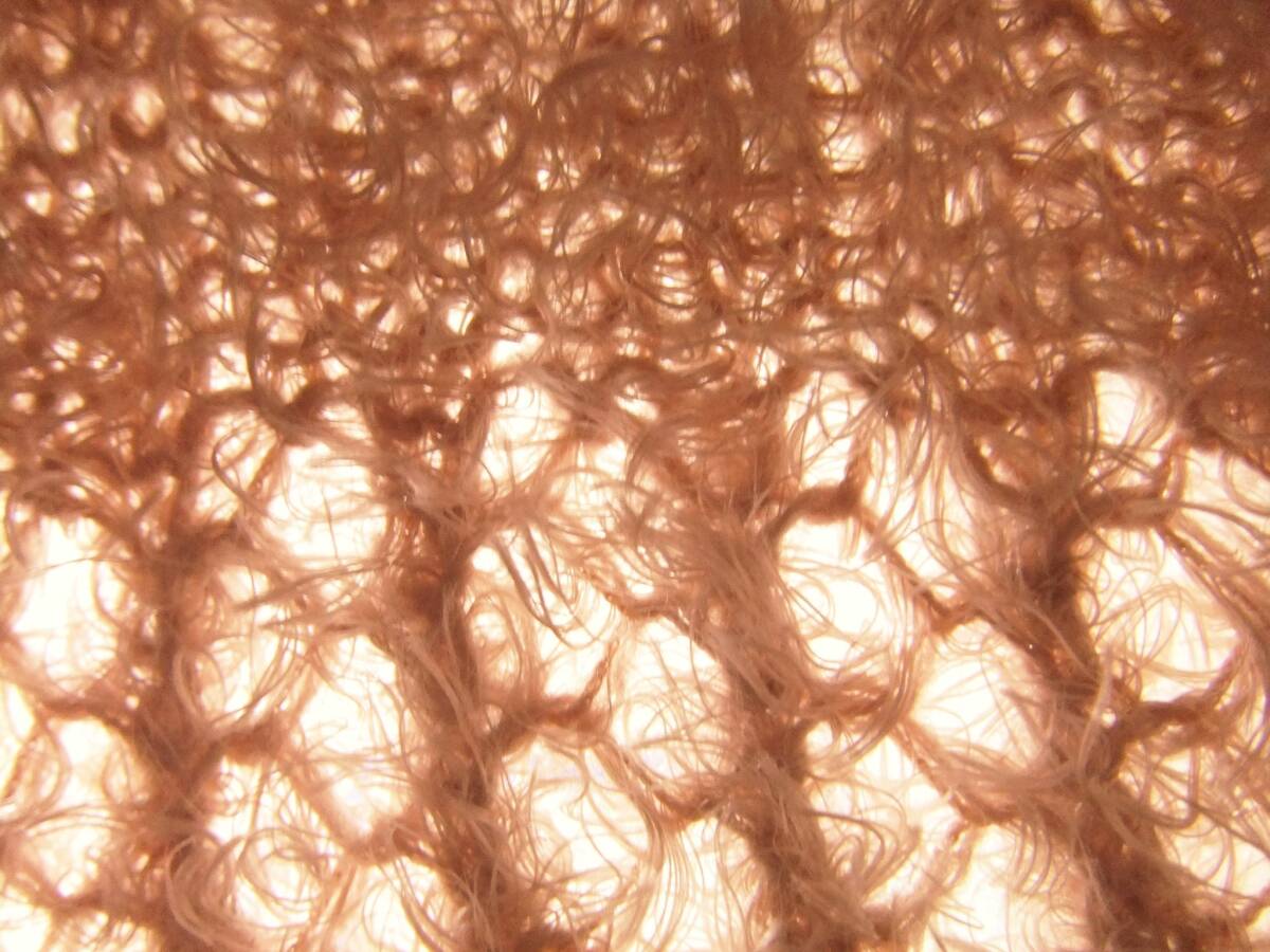 毛足の長く、画像5枚目でわかるようにざっくりと編んだニット生地です。