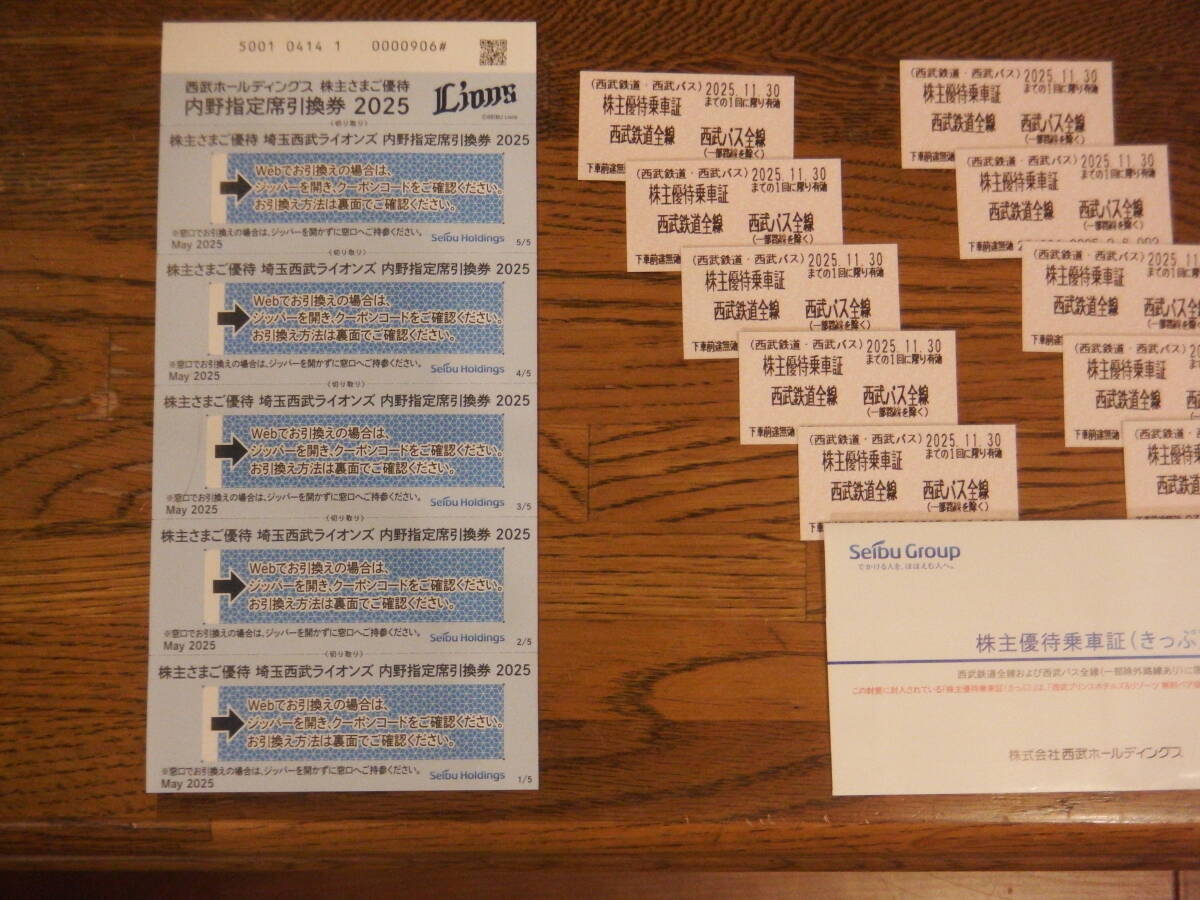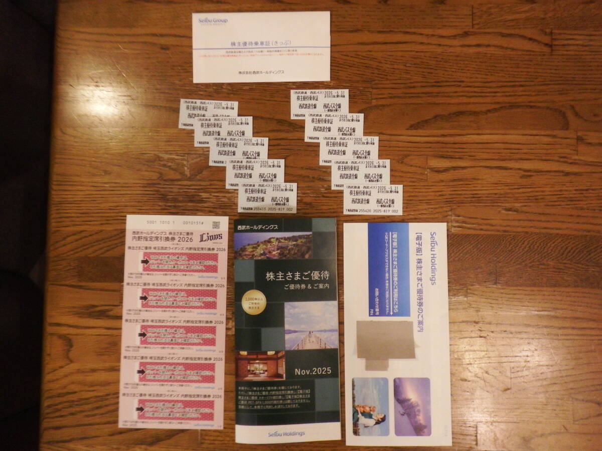 西武ライオンズ内野指定席引換券5枚、西武ホールディング株主ご優待券&ご案内、 西武鉄道優待乗車証10枚、(1000株以上)