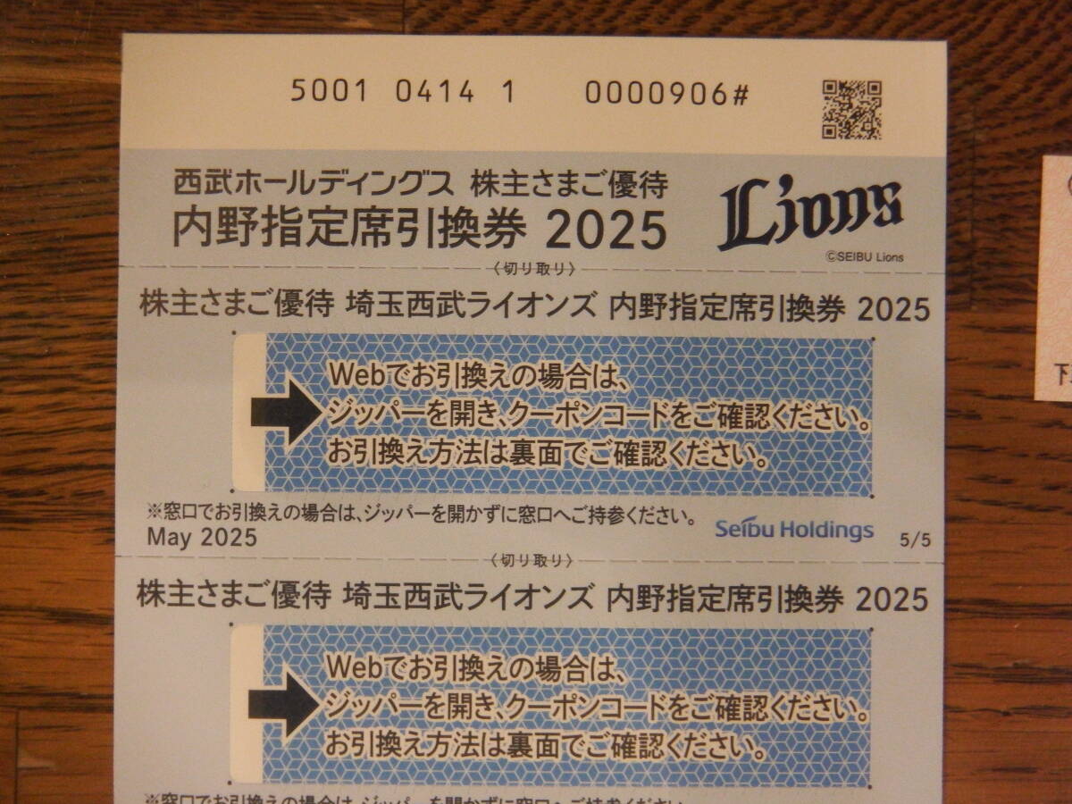 埼玉西武ライオンズ内野指定引換券2025  5枚
