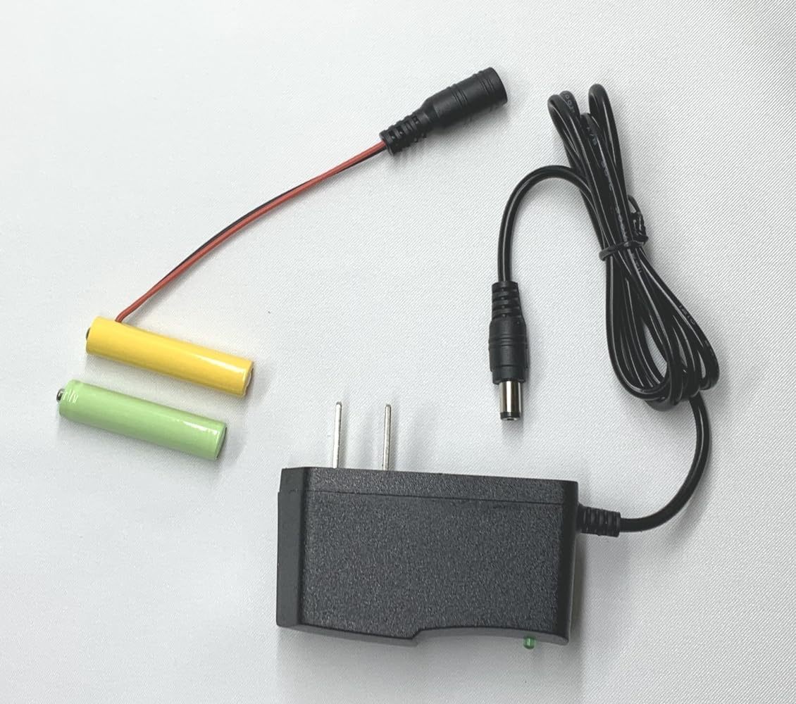 • ・対象製品(乾電池を使用する製品)にダミー電池を入れ、付属のACアダプターをつないで電気を供給します。本品を使うことで対象製品の電池切れの心配をなくすことができる他、アルカリ電池の液漏れによる基板破損を防ぐ目的にも適します。