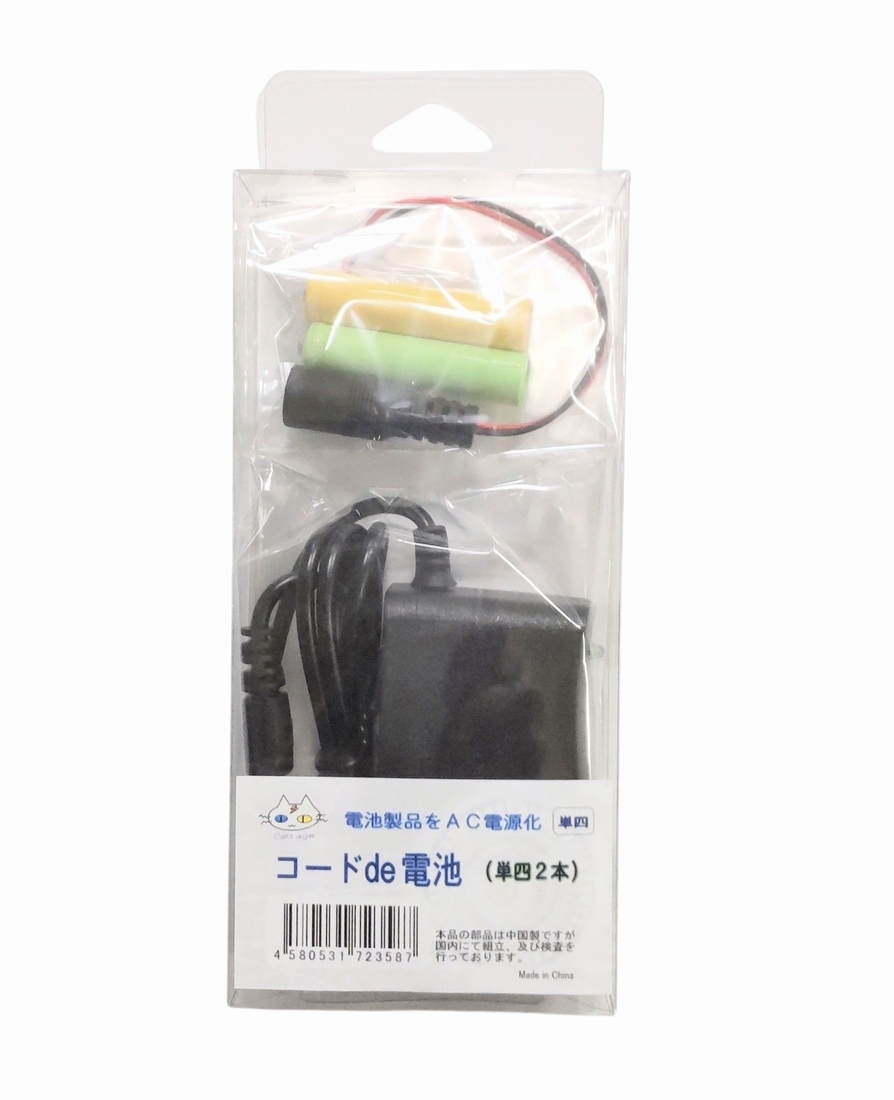 単四ダミー電池「コードde電池」ACアダプター付属 3V用(単四2本) 乾電池製品を家庭用100V電源で使える CTG-358001