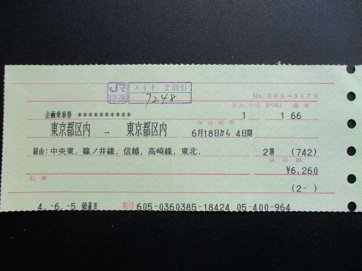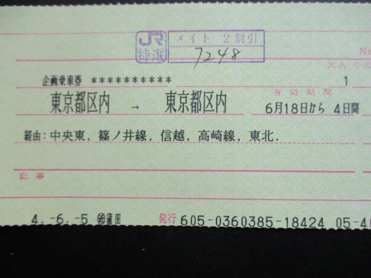 ☆ JR東日本 マルス端末発行・企画乗車券(東京都区内→東京都区内)