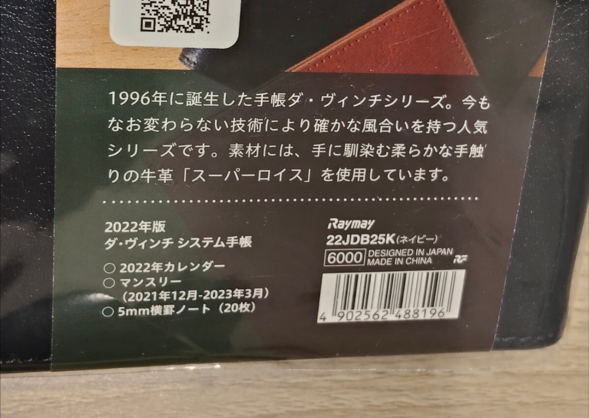 ダ・ヴィンチ Davinci システム手帳 ジャストリフィルバイブルサイズ 2022 本革製 未使用品です。