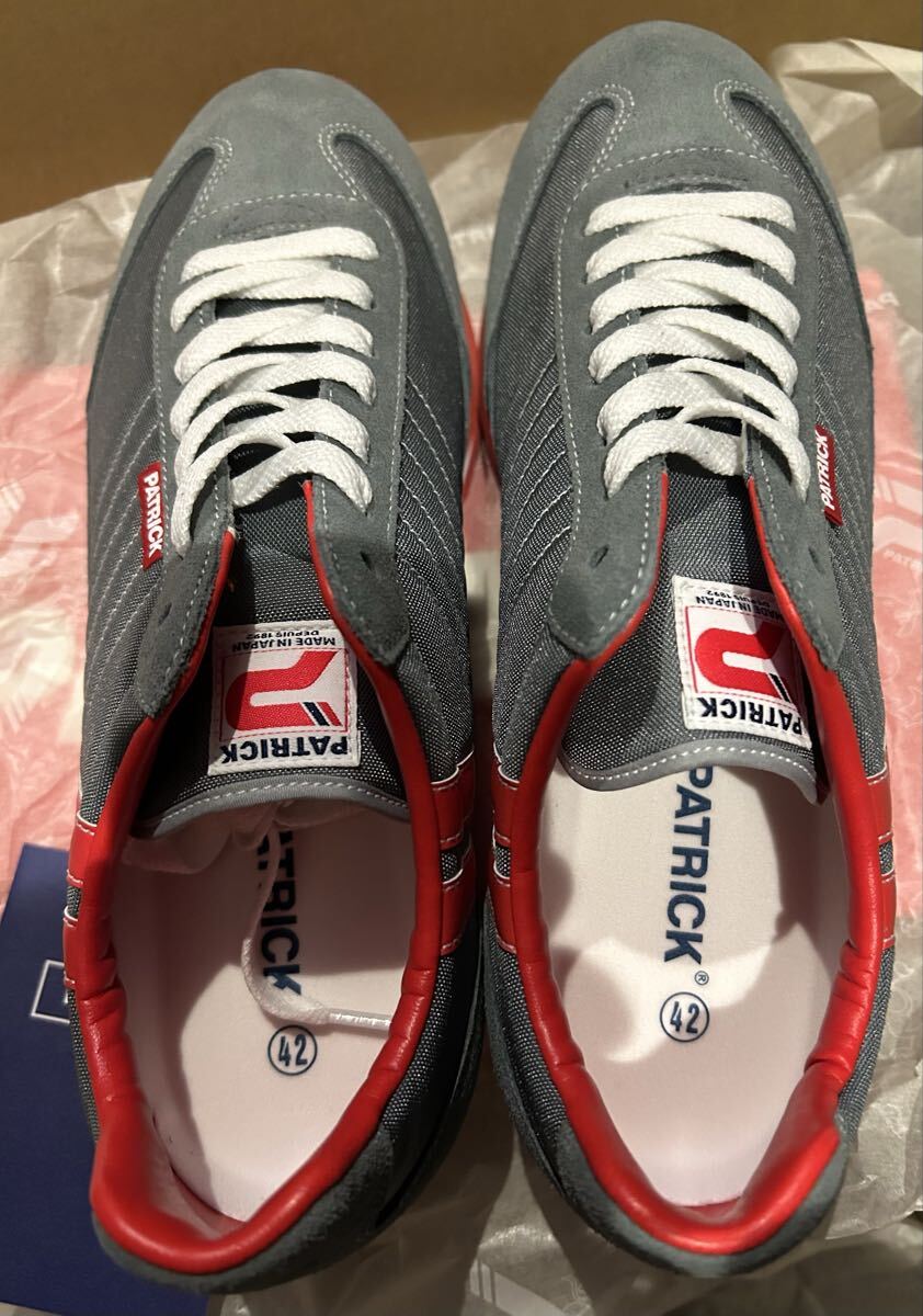新品 未使用 パトリック マラソン 人気モデルスニーカー 人気のGRY 42サイズです。