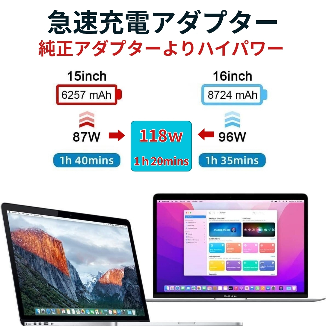 急速 充電器 118W USB C PD Type-c ノートPC 電源アダプタ MacBook Pro Switch Think pad 61w 67w 87w 96w 100w スマホ モバイル 高速