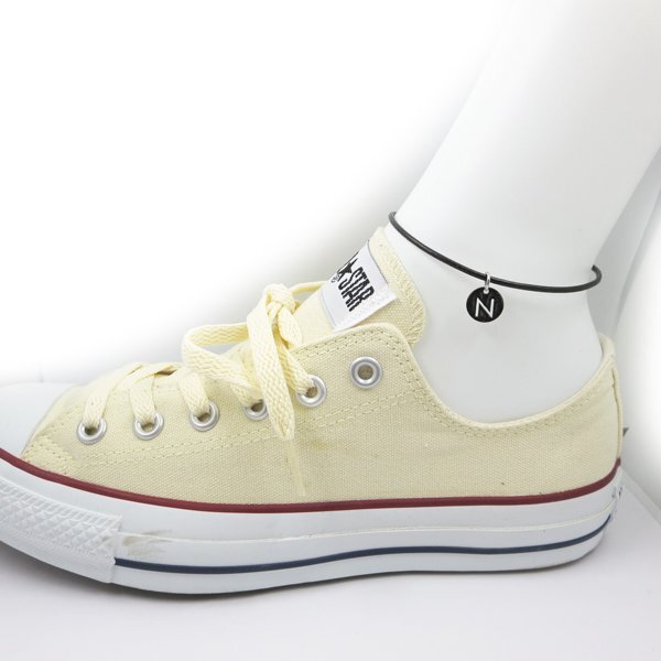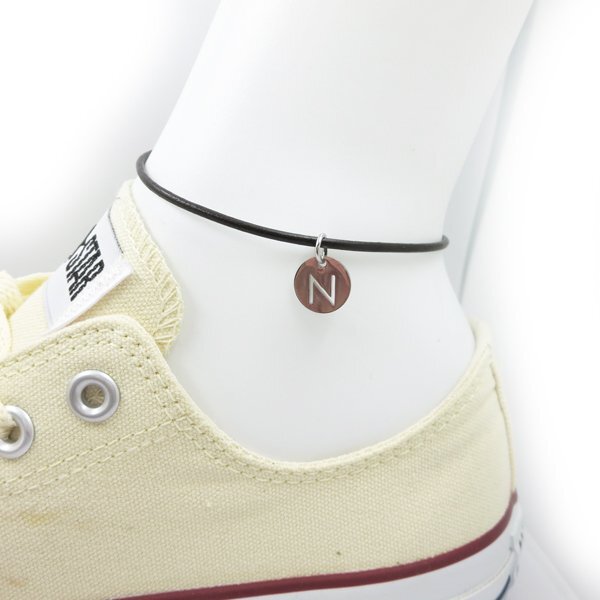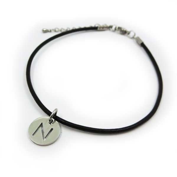 N レザーアンクレット イニシャルチャーム付き ラウンド型 ステンレス金具 26cm(22+4cmアジャスター)