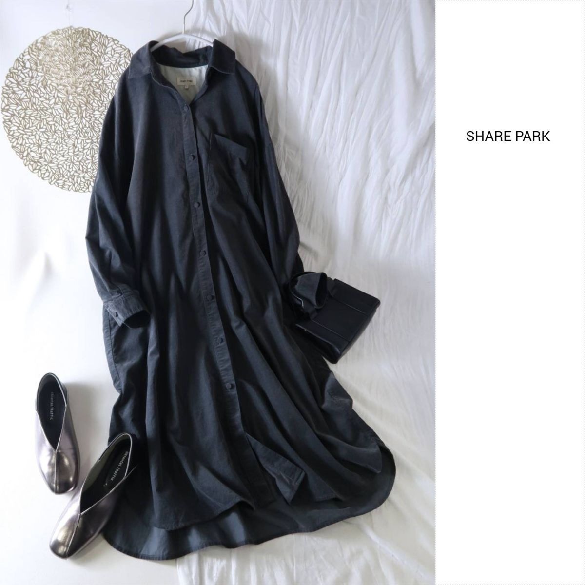 シェアパーク SHARE PARK☆洗える 綿100% コーデュロイシャツワンピース 1サイズ☆M-B 6014