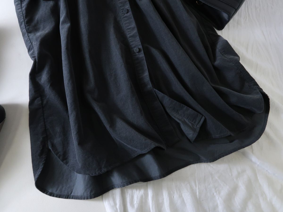 細畝コーデュロイ生地を使用した、軽い着心地のシャツワンピース。 ワンピースとしてはもちろん、前を開けて羽織りとしても活躍します。 サイドポケットを備え、実用性もばっちり◎