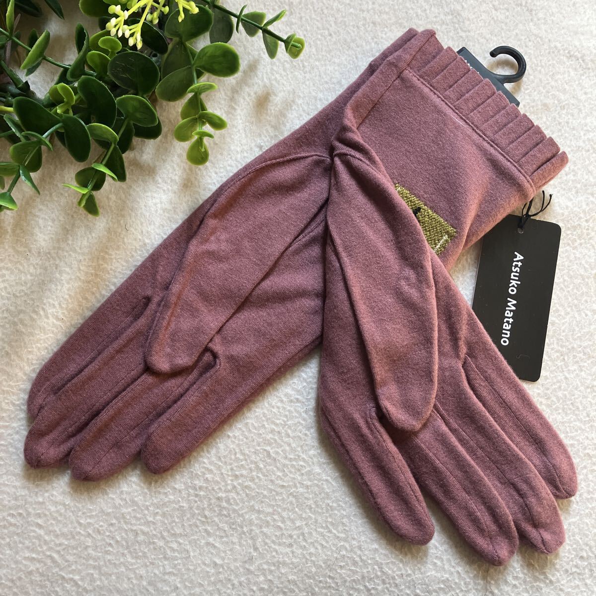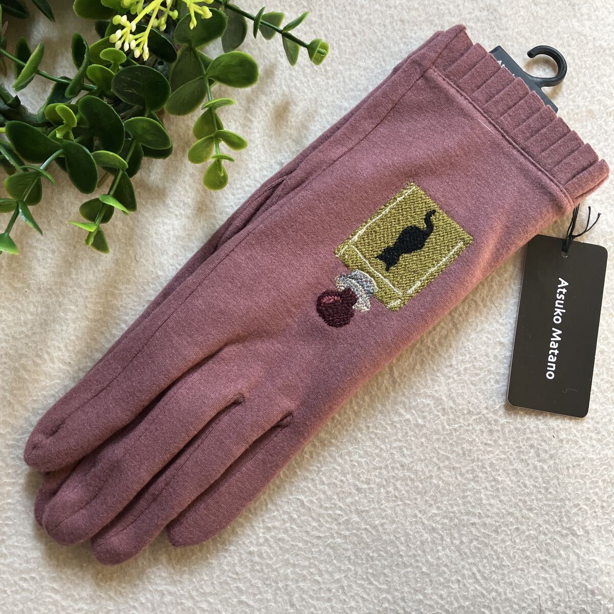 ★新品★ Atsuko Matano マタノアツコ リップ/香水瓶 刺繍 手袋 レディース くすみピンク系