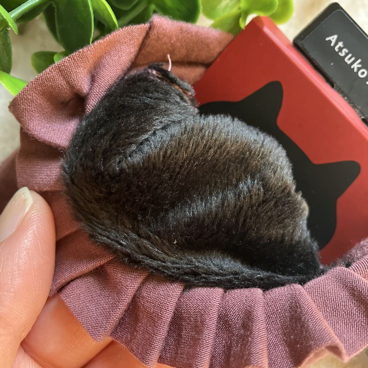 左右でデザインが違い、左手にネコの香水瓶の刺繍があります。