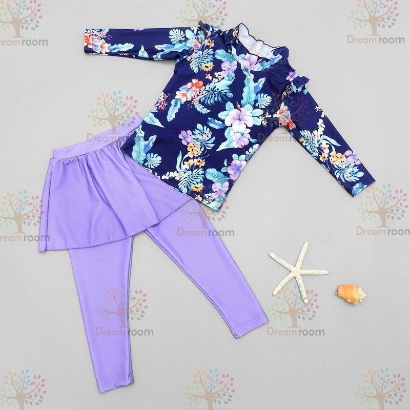 1スタ☆ラッシュガード セパレート水着 上下セットアップ ブルー【4XL】135-150cm 子供服 女の子 レギンス 長袖 ズボン 日よけ ビキニ 海 プール swi-108