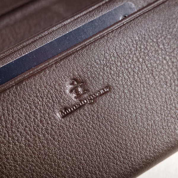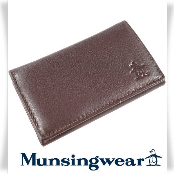 | Munsingwear マンシングウェア メンズ 牛革レザー 本革 二つ折り ロゴ 名刺入れ カードケース茶 ブラウン |