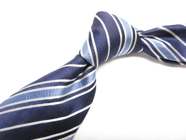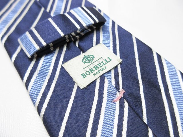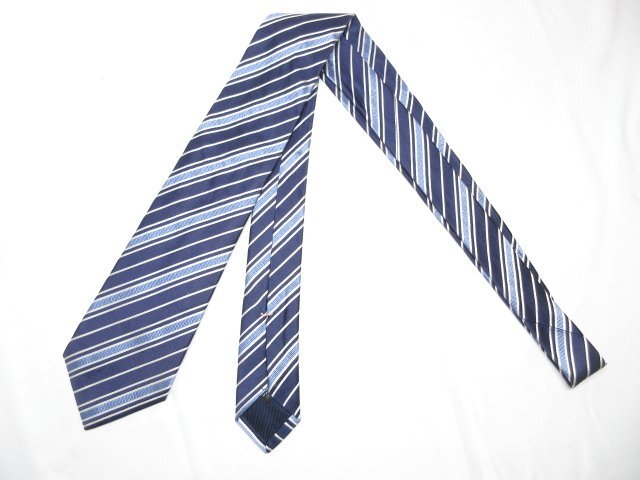【ルイジボレッリ LUIGI BORRELLI】お洒落なレジメン柄 シルクネクタイ (メンズ) ネイビー系 イタリア製 ◇39MM8765◇