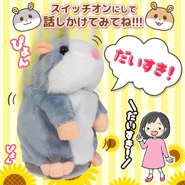 ものまね ハムスター ぬいぐるみ 動く 喋る 子ども おもちゃ アニマル プレゼント 送料無料- 60N◇ まねまねハムちゃん:グレー