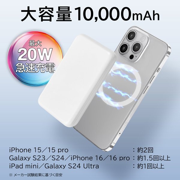 | マグネット式ワイヤレス充電対応 モバイルバッテリー 10000mAh |