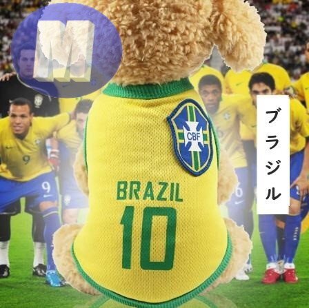ドッグウェア 春夏 ブラジル Mサイズ サッカー 代表 ユニフォーム 犬服 小型犬 袖なし 通気性 柔らか 洋服 可愛い