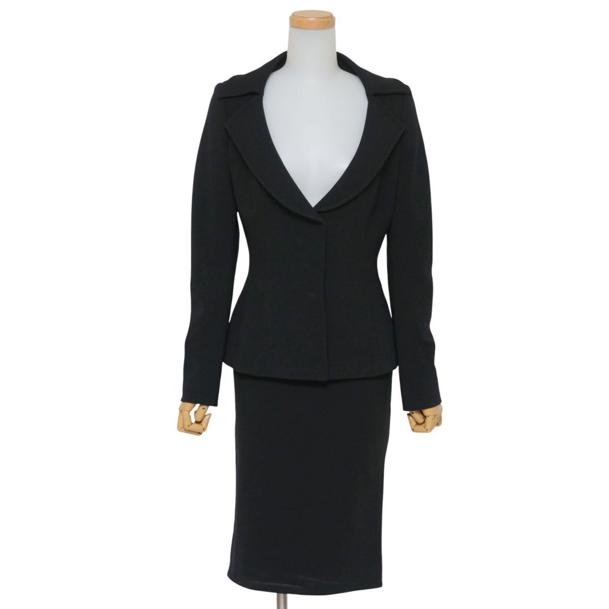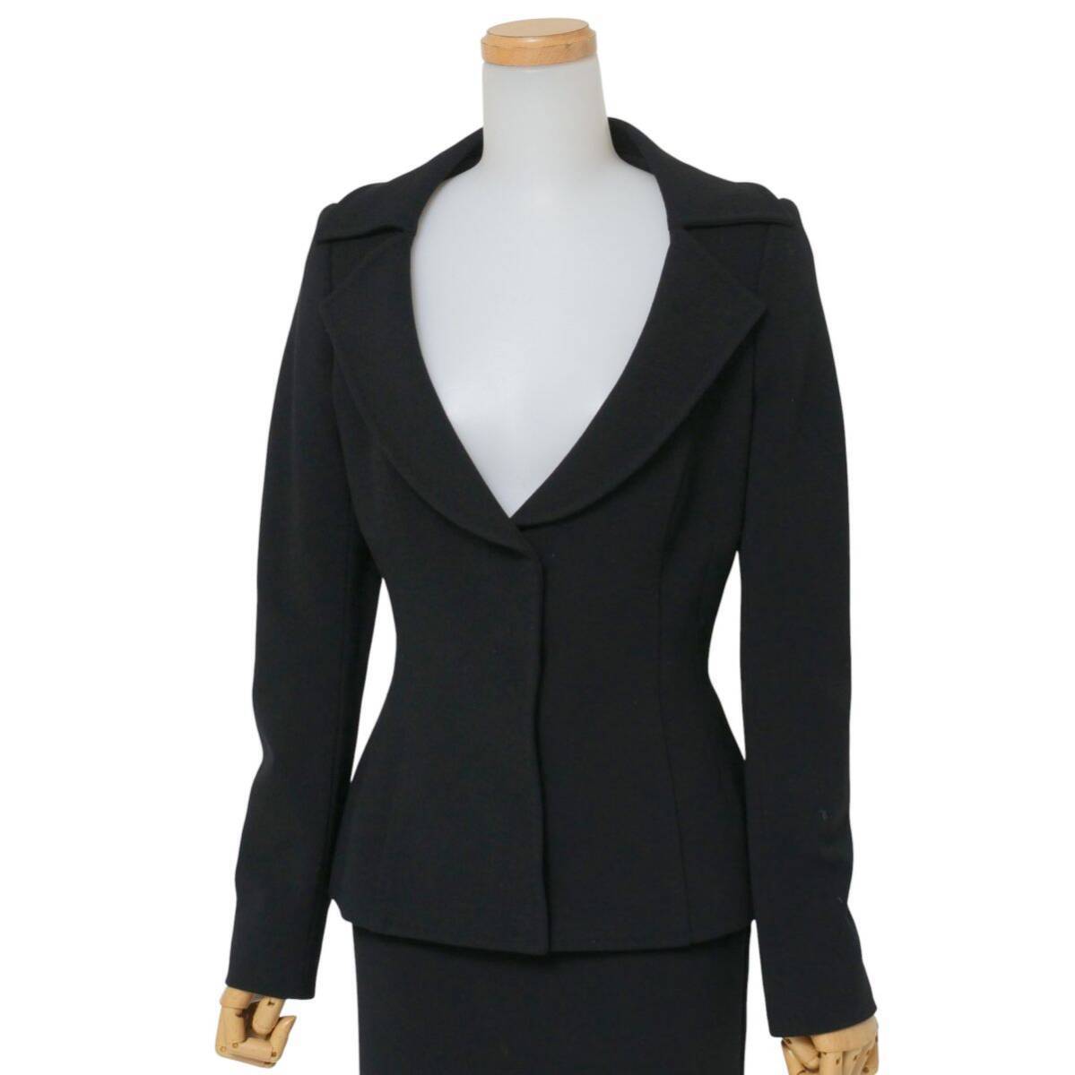 表記サイズ:いずれも40 ※弊社の私見となりますが、日本人のサイズ感ですと「XS」程度かと思われます。 (※念の為、商品実寸をご参考下さい。) 商品実寸 ジャケット 着丈 :約56cm 肩幅 :約35.5cm 身幅 :約41.5cm 袖丈 :約61cm スカート 総丈 :約59.5cm ウエスト幅:約34.5cm ヒップ幅:約40cm スリット:約19.5cm |