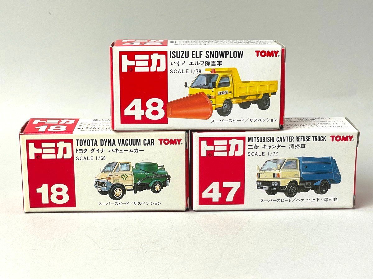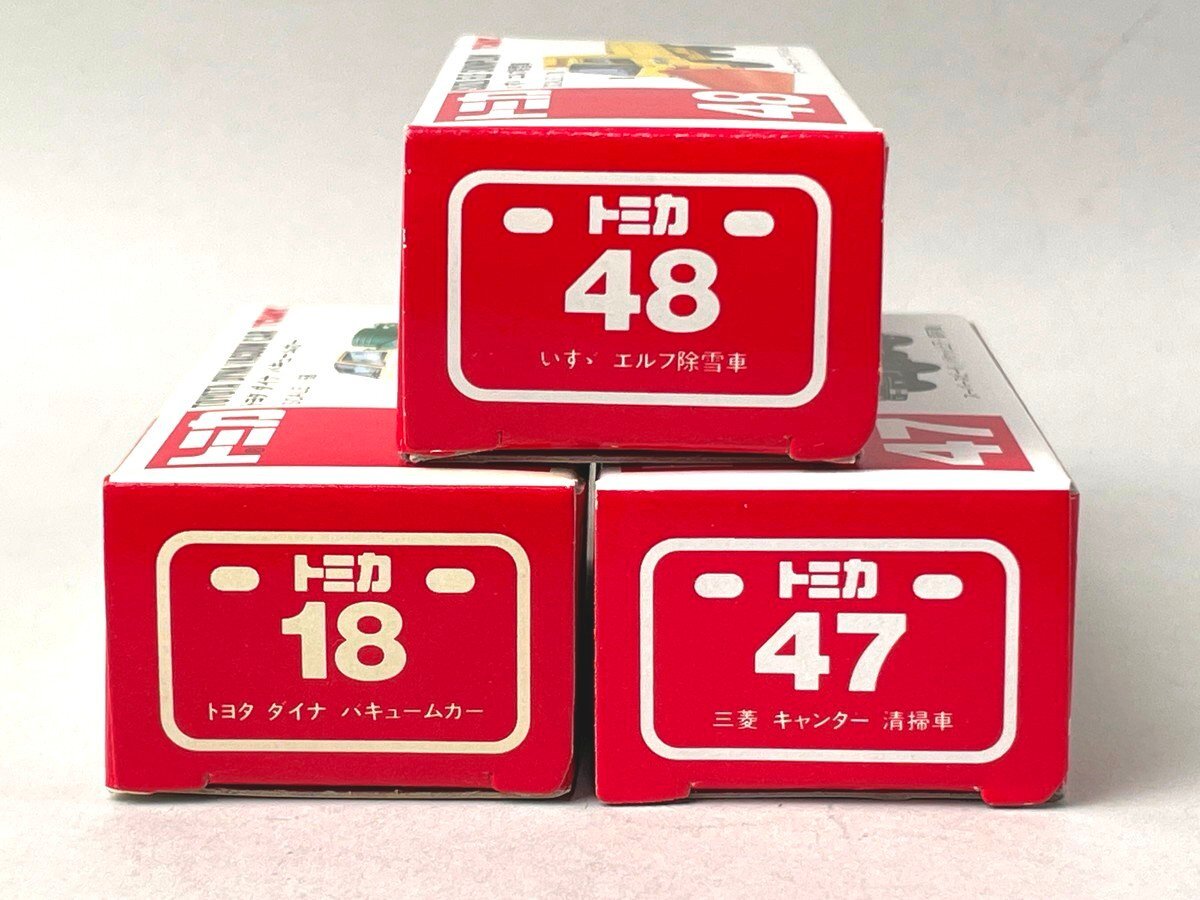● TOMY TOMICA トミー トミカ いすゞ エルフ 除雪車 48 / 三菱 キャンター 清掃車 47 / トヨタ バキュームカー 18 3点セット ●