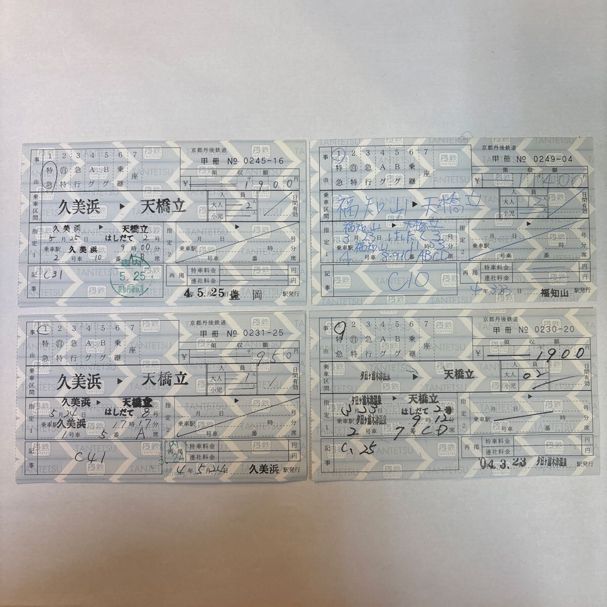 京都丹後鉄道 料金補充券 発行駅違い4種まとめて H4