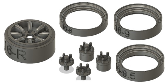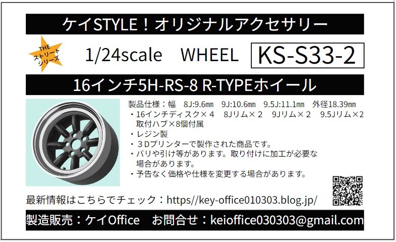 S33-2 16インチ5H-RS-8 R-TYPEホイール ケイSTYLE! THEストリートシリーズ 1/24scale カーモデル用 1台分 3Dプリント レジン製