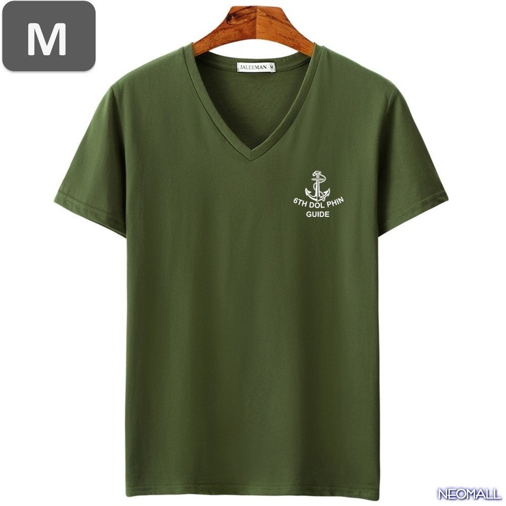 夏にピッタリ ☆ Vネック 半袖 Tシャツ【454】 グリーン Mサイズ トップス シャツ シンプル イラスト デザイン 春夏