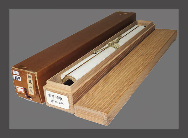 肉筆、真作保証。 作品に、時代感、シミ、汚れ、折れ、巻きじわがあります。 表装に、時代感、多少の折れ、巻きじわがあります。 箱は合わせ箱です。軸先があります。 白井烟嵓 略歴:明治27(1894)年~昭和51(1976)年 豊橋市花田町に生まれました。16歳より従兄の 白井永川に南画を学びます。松林桂月に師事し、 大正9(1920)年、第2回帝展初入選以後、 帝展や新文展に出品し、戦後は日展へ出品しました。 昭和49(1974)年、渡辺崋山顕彰の 功績が認められ、田原町町政功労者として表彰されました。 下記の真作保証について・注意事項をよくご覧の上、 お気に召された方に、お譲り致しますので、ご入札を宜しくお願い致します。 |