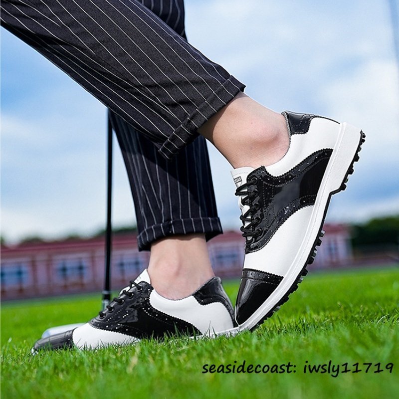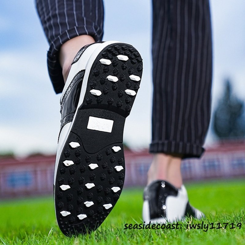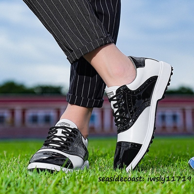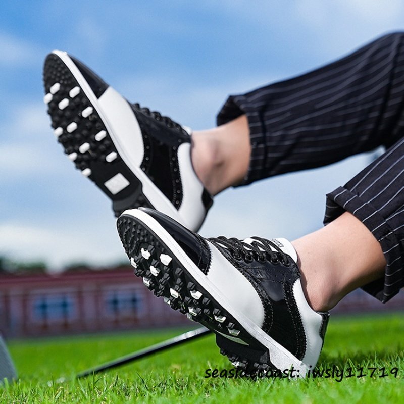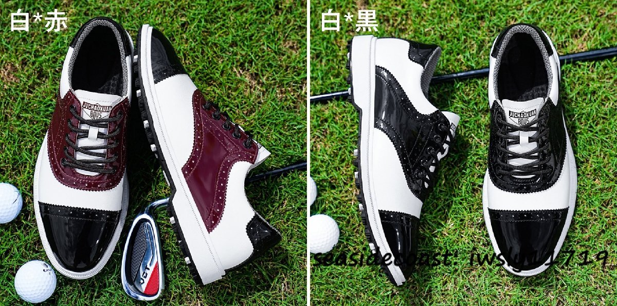 新品◆ゴルフシューズ スポーツシューズ メンズ 高級品 ソフトスパイク イギリス風 フィット感 防水 防滑 スニーカー 紳士靴 白*黒 26.5cm