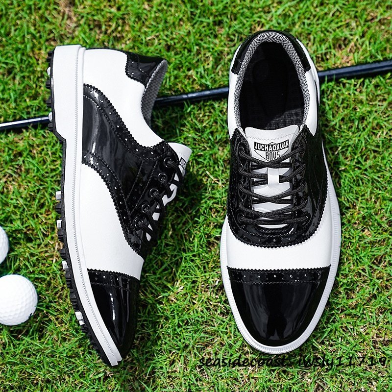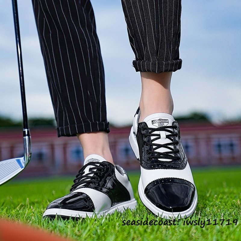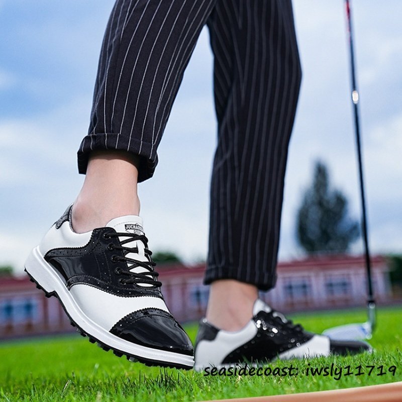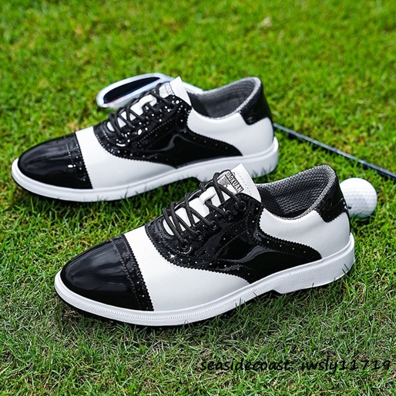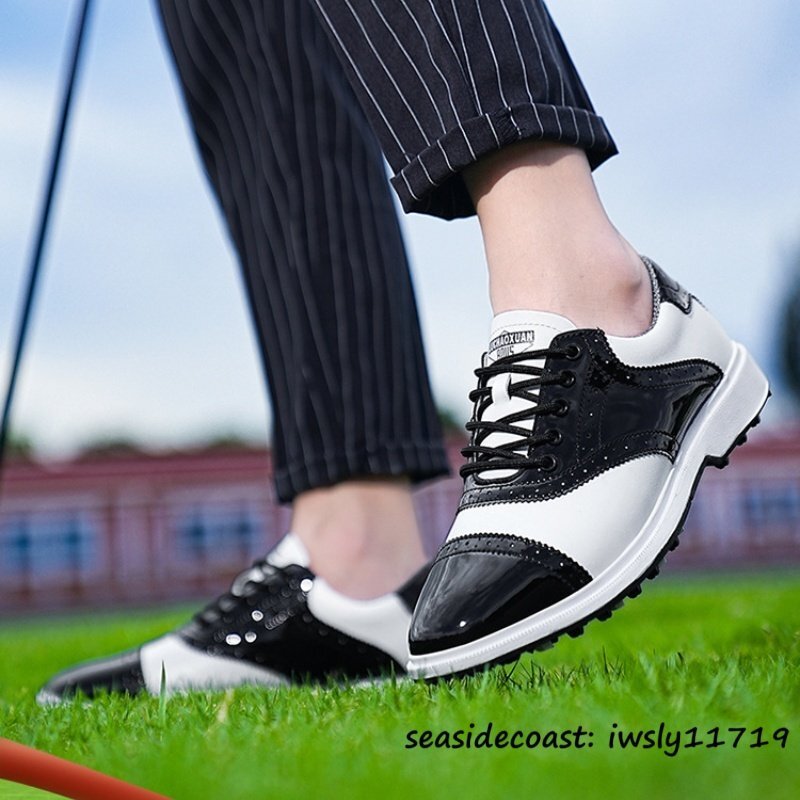 新品◆ゴルフシューズ スポーツシューズ メンズ 高級品 ソフトスパイク イギリス風 フィット感 防水 防滑 スニーカー 紳士靴 白*黒 26.5cm