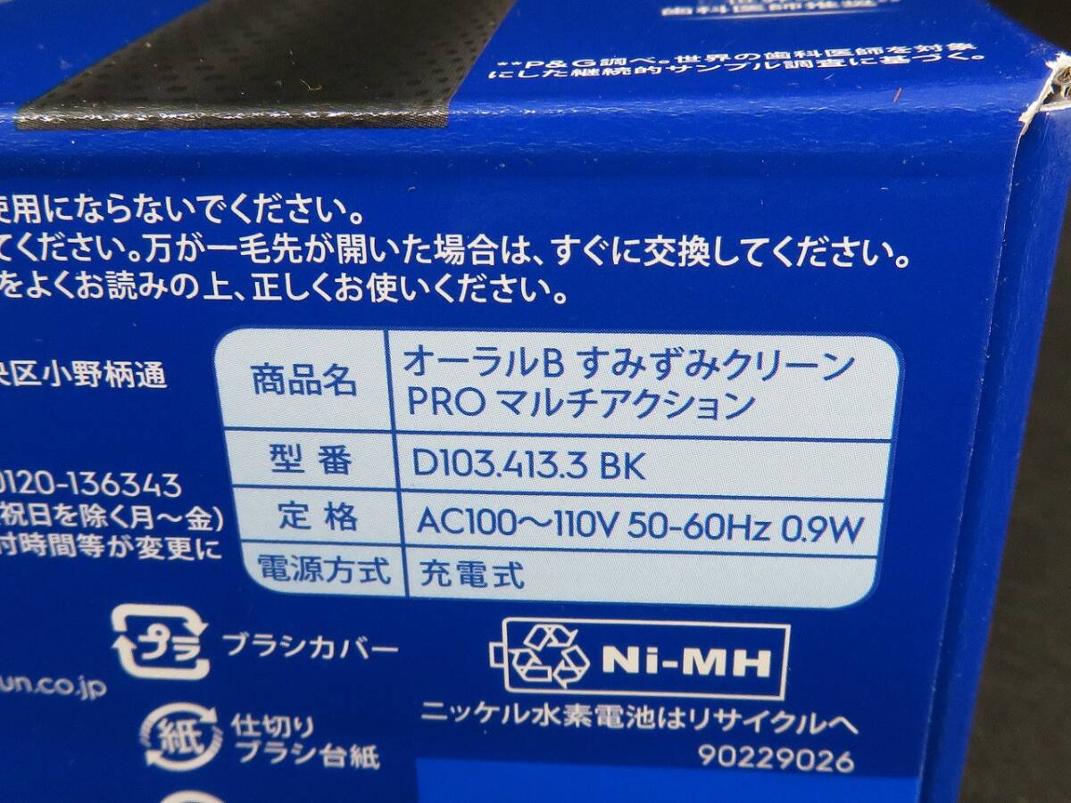 | 未開封品 BRAUN ブラウン オーラルB すみずみクリーン PRO マルチアクション D103.413.3BK *1104 | ||