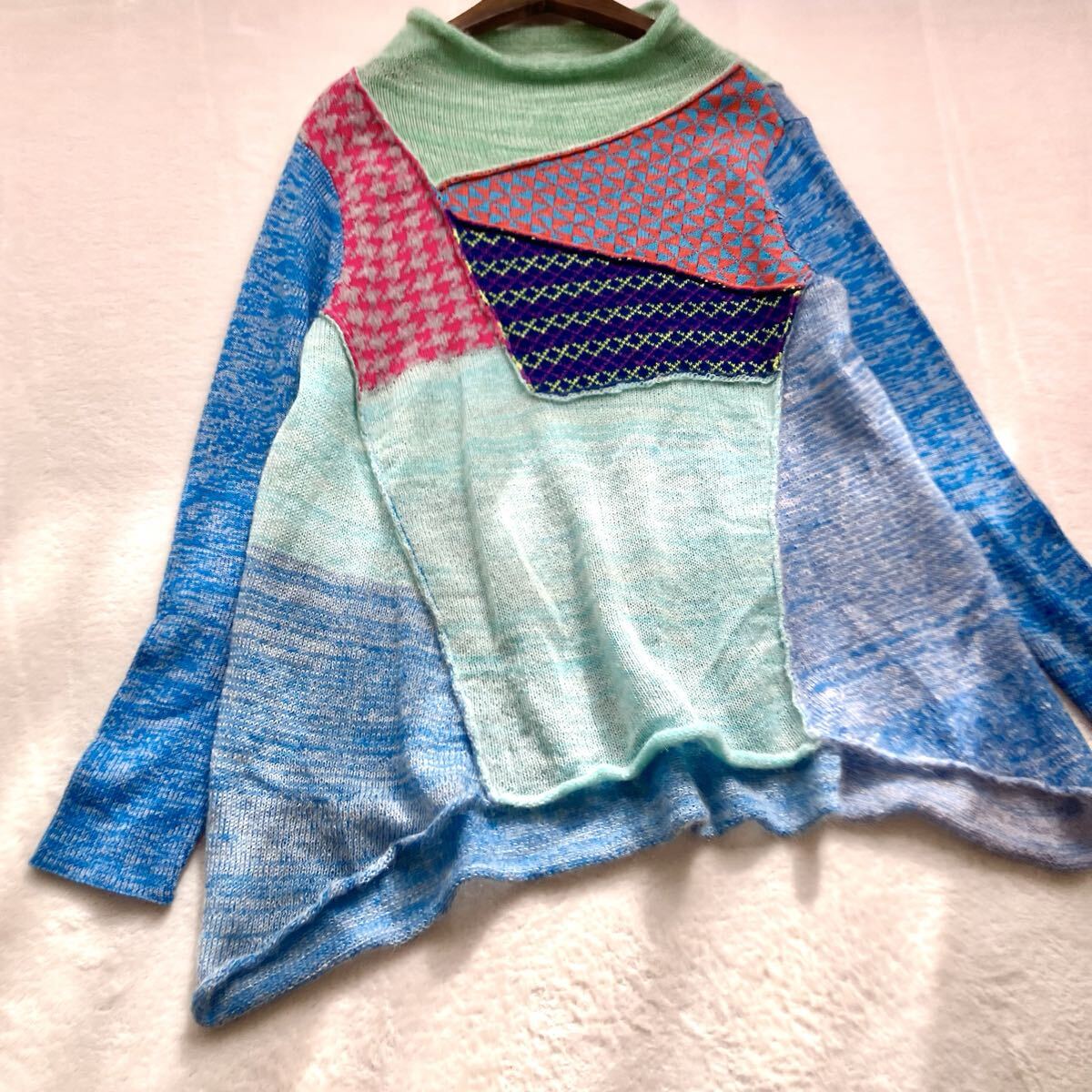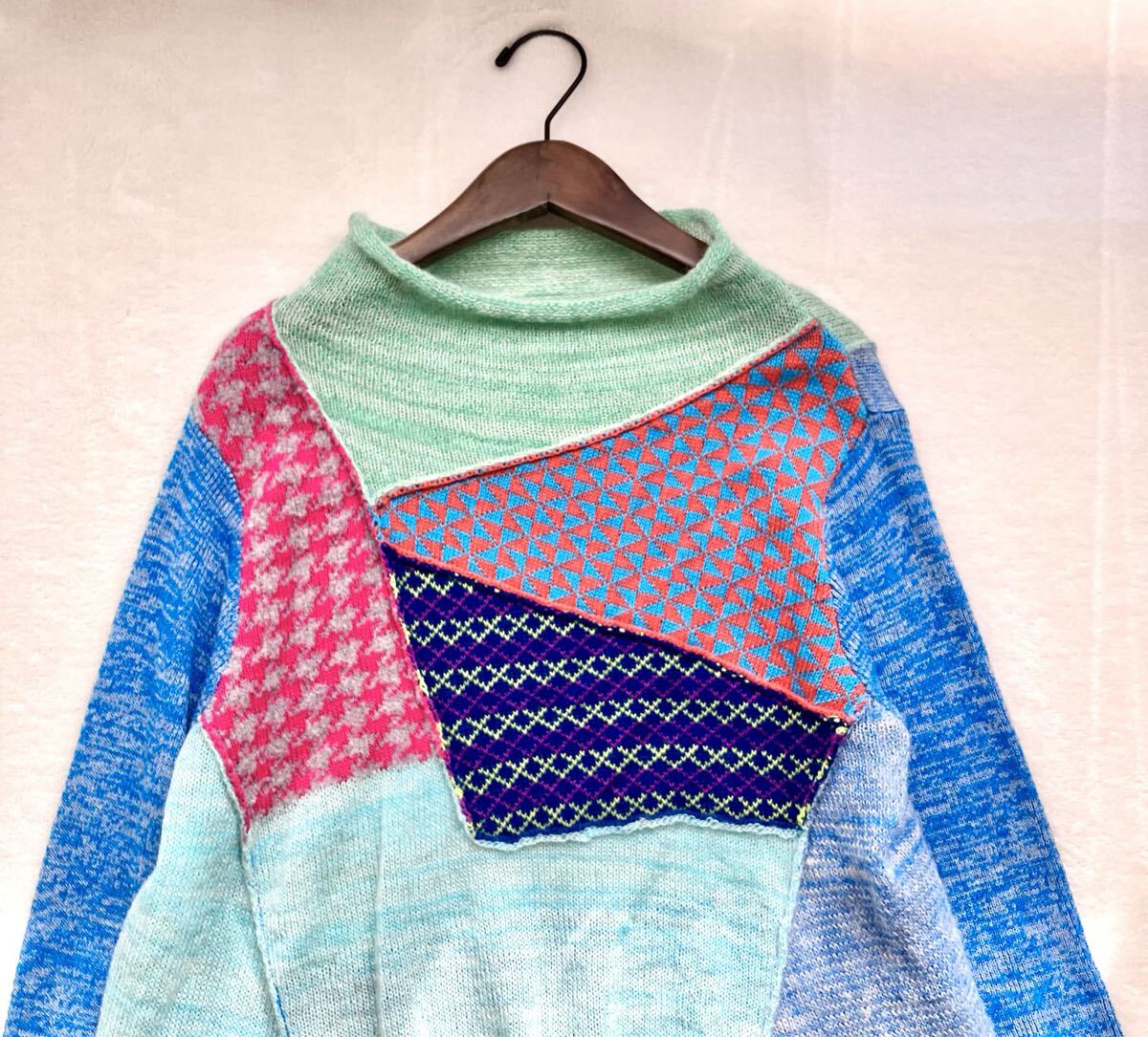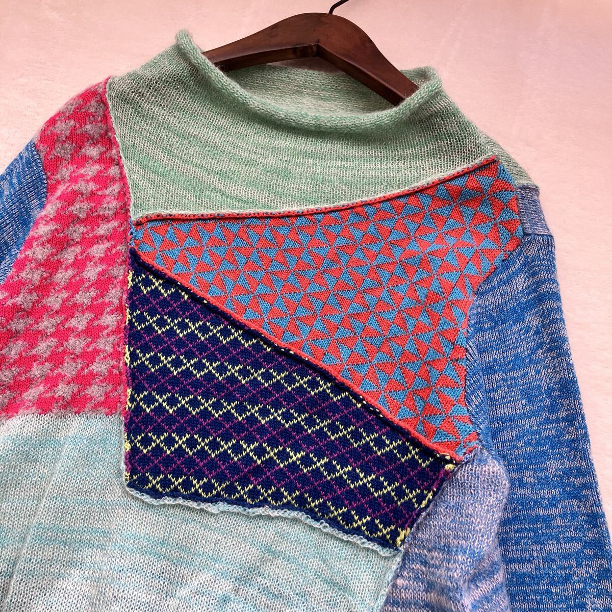 カラフルなパッチワークデザインのニットセーター、チュニックです。