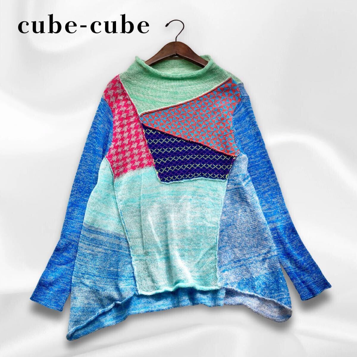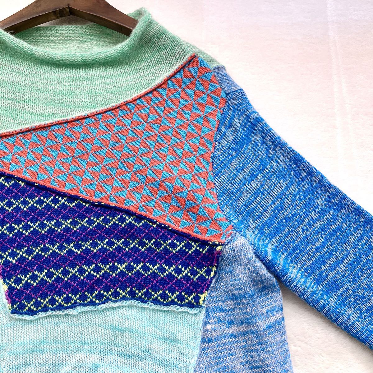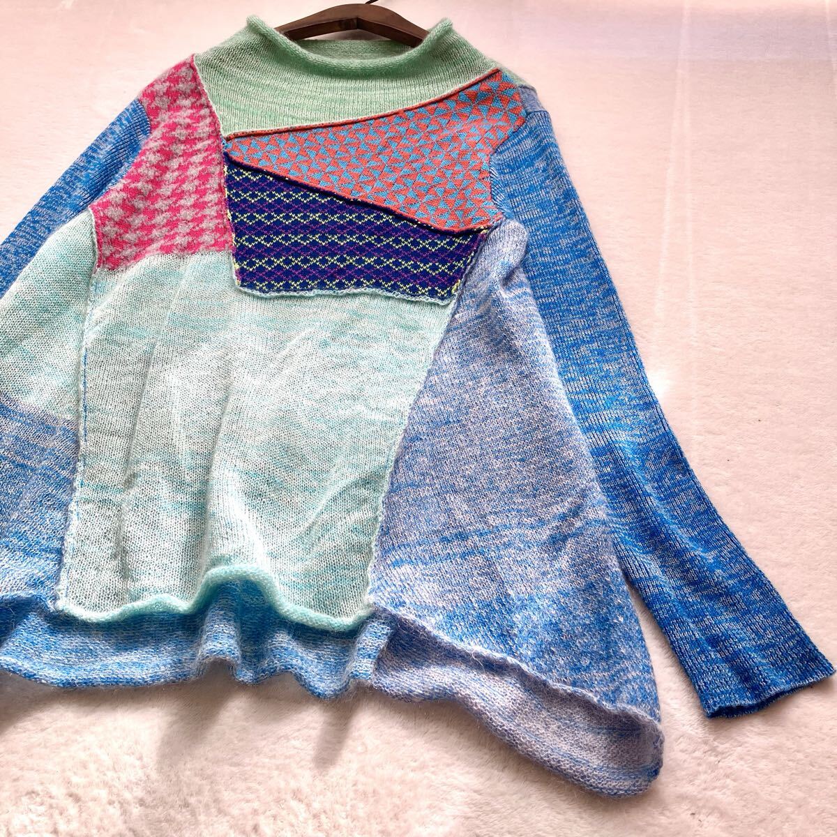 カラフルなパッチワークデザインのニットセーター、チュニックです。