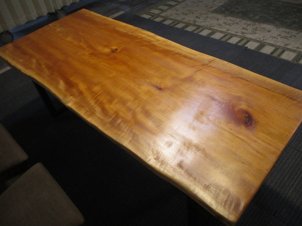 椨の一枚板無垢のテーブルです。銘木です。もともと稀少材で、高級テーブルとして取り扱われてきました。きれいに仕上がっています。