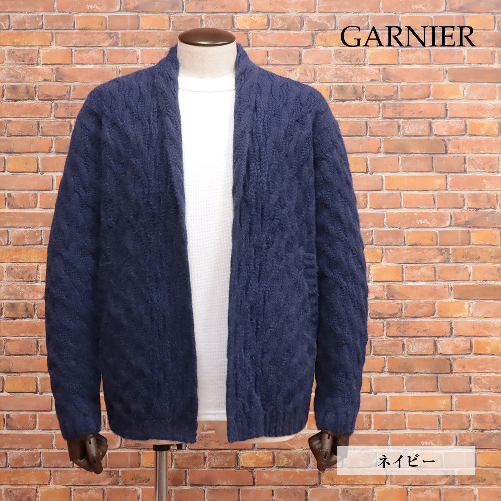 1円/24AW/GARNIER/Lサイズ/ショールカラー カーディガン 4024667031 ケーブル編み ボタンレス 上品 レトロ 新品/紺/ネイビー/ma461/